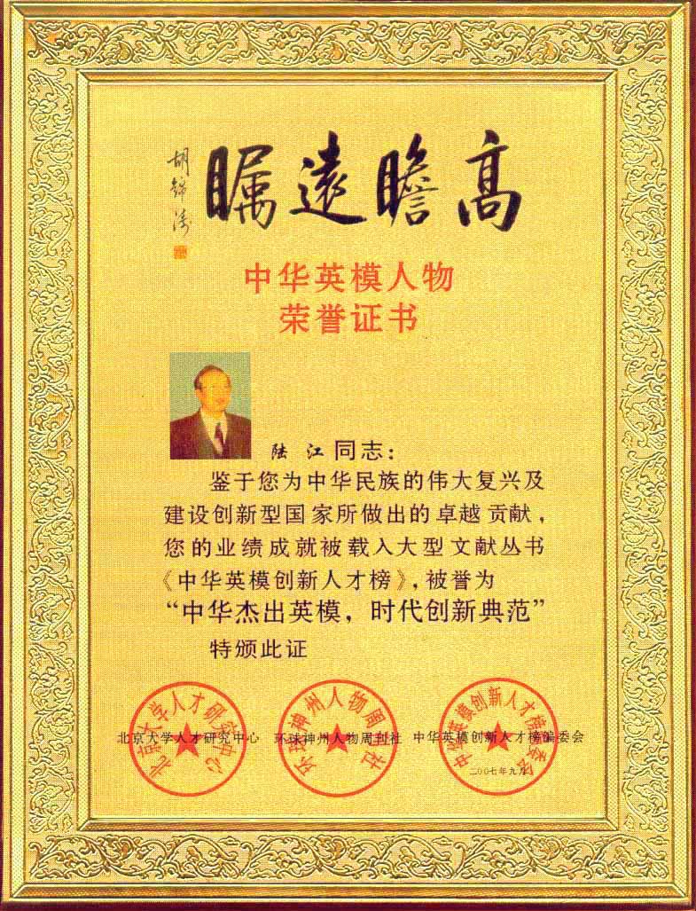 陸江被中共中宣部評(píng)為中國杰出人物封面